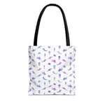 A lightweight, everyday tote that carries a little bit of wonder. Soft watercolor sea creatures drift across a bright white canvas, each splash of teal and lavender catching the light as you move. The roomy, boxed-corner body holds your essentials—sketchbook, market finds, a light sweater—while reinforced handles and sturdy polyester keep the shape steady from commute to coffee break. The black inner stitching and available handle colors add a subtle, finished look that lets the playful pattern remain the star. Bring a calm, oceanic mood to errands, beach days, art classes, and quiet weekend outings.